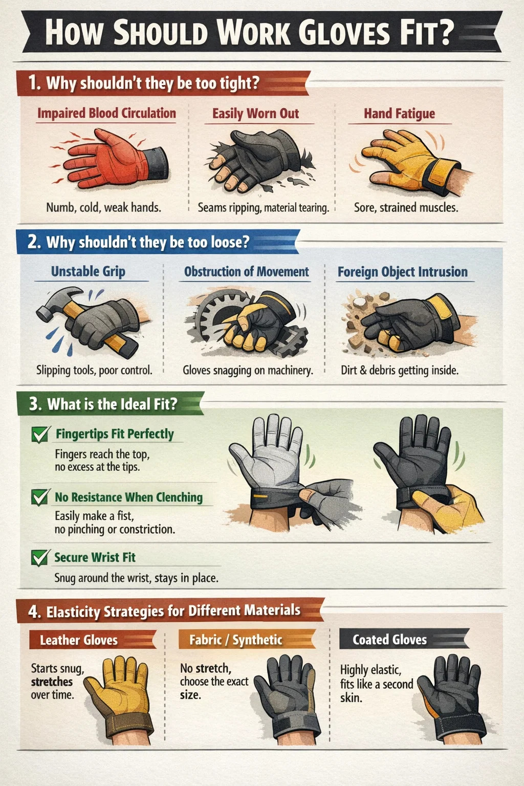 În timp ce toată lumea își dorește flexibilitate, alege mănuși de lucru care sunt prea strânse pot duce la următoarele probleme:
